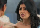 Before she can process further, the door opens. Mahi walks into the cabin and catches Bindi red-handed. The tension spikes instantly. Mahi pushes her against the wall, his tone sharp and accusing as he demands to know what she is doing there. Thinking fast, Bindi masks her fear and claims she has brought a pen drive to show him some designs. Mahi isn’t convinced. He coldly tells her that there is no need to come at night just to show designs. In that moment, Bindi realizes that Mahi is starting to suspect her intentions. Inside, she panics, knowing she has stepped dangerously close to the truth and must now find a way out without exposing herself.