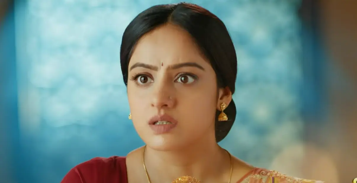 The episode opens with a moment that finally gives viewers the satisfaction they have been waiting for. Mangal stands firm, eyes blazing with clarity, as she tears apart the agreement papers meant to separate her from her family. She doesn’t think twice. She tears the papers and throws them at Sowmya. It is her way of saying no to everything Sowmya tried to do. Mangal says she can give up anything for her family, but she will not leave them. She tells Sowmya she is not naïve, not uneducated, and not foolish enough to trust someone with bad intentions.